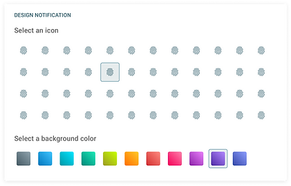 While waiting for that , I got started on the 2nd part of the solution: to design a dedicated frontend UI, where the user can design their own notifications by selecting a background gradient and icon.