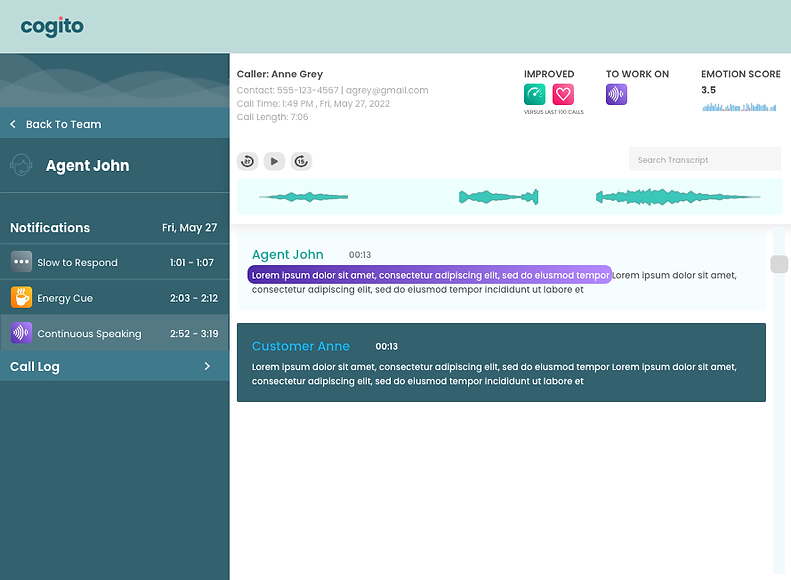 Cogito is the market leader in call center AI solutions, with over a decade of advanced R&D and hundreds of millions of analyzed phone conversations.